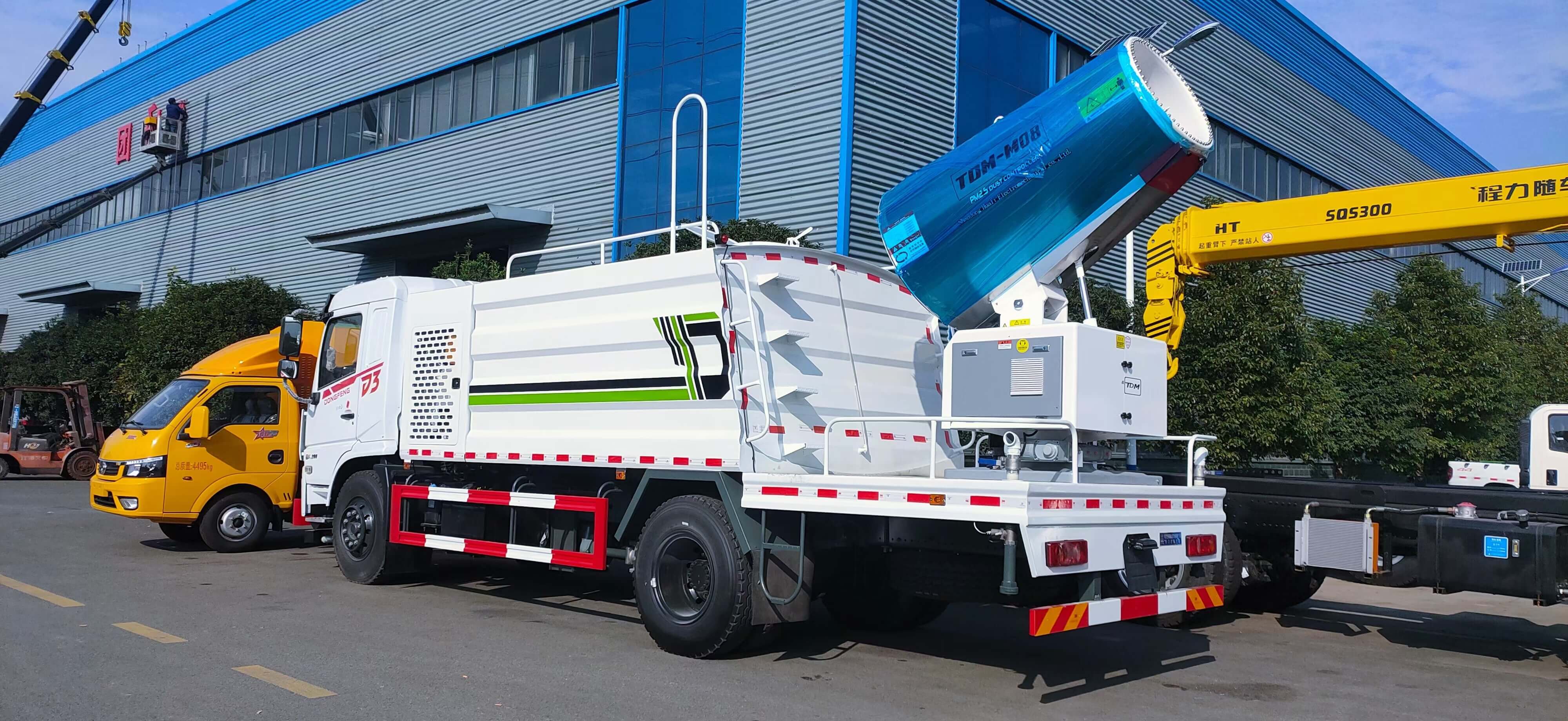 東風大品牌5-12方霧炮車、灑水車,康明斯大馬力發(fā)動機,有前置電子炮,可噴射細長水柱,霧狀水柱等